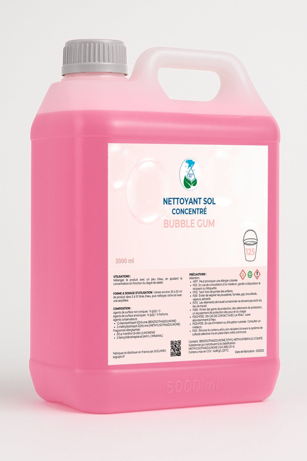 Profitez d'un sol propre et frais avec notre Nettoyant sol Bubble Gum 5L. Ce nettoyant concentré élimine efficacement la saleté et laisse une agréable odeur de bubble gum. Avec une formule concentrée, une bouteille de 5L peut couvrir une vaste surface, offrant un excellent rapport qualité-prix.